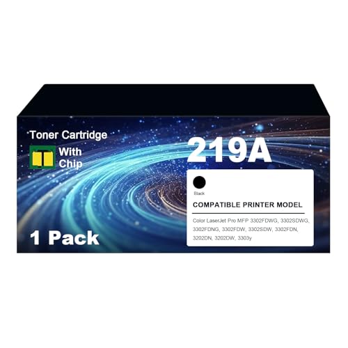 219A Cartouche de toner compatible avec HP Color LaserJet Pro MFP 3302FDWG, 3302SDWG, 3302FDNG, 3302FDW, 3302SDW, 3302FDN, 3202DN, 3202DW, 3303y - 1 cartouche noire (avec puce)
