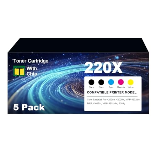 Lot de 220 cartouches de toner de rechange pour HP Color LaserJet Pro 4202dn, 4202dw, MFP 4302dw, MFP 4302fdn, MFP 4302fdw, 4303y - Avec puce (2 noires, 1 cyan, 1 magenta, 1 jaune)