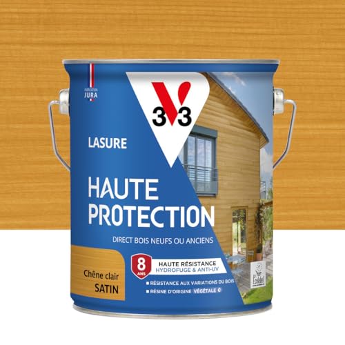 V33 Lasure Bois extérieur Chêne naturel satin - Haute Protection 8 ans - Haute résistance hydrofuge et anti-UV - Résiste aux variations du bois - Ecolabel, résine d'origine végétale - 2,5L