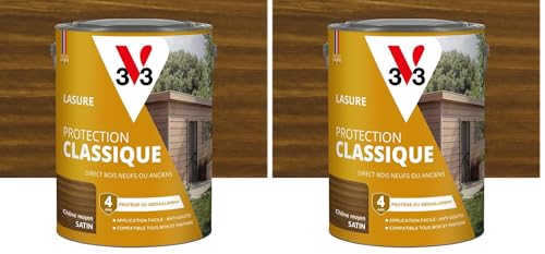 V33 Lasure Bois extérieur Chêne moyen - Protection Classique 4 ans - Protège du grisaillement - Direct bois neufs ou anciens - Texture anti-goutte - 5L (Lot de 2)