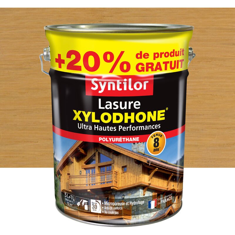 Lasure extérieure Syntilor Xylodhone Ultra Hautes Performances chêne clair satin 5L + 20% gratuit