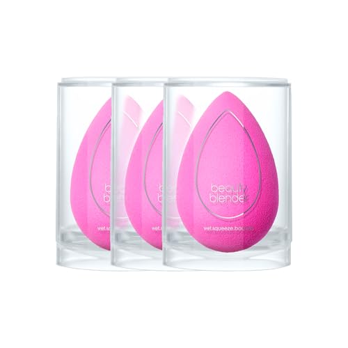 Beautyblender Pink Lot de 3 éponges de maquillage activées par l'eau - Sans latex, sans cruauté envers les animaux, colorants non toxiques - Parfait pour le fond de teint liquide, la poudre, la crème
