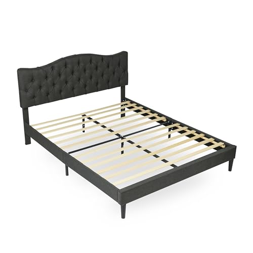 Zinus Christina 36 cm Ras de lit à Plateforme rembourré avec tête de lit, Support à Lattes en Bois, Facile à Monter, pour Adultes, Enfants et Adolescents Gris foncé 80 x 190 cm
