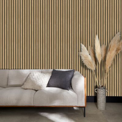 Papier peint vinyle expansé intissé effet lattes de bois clair L.1005 x l.53cm Grandeco