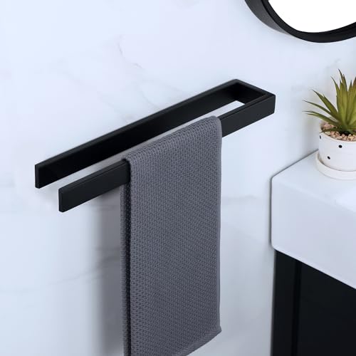 SAYAYO Porte Serviette Salle de Bain sans Perçage, Adhesif Porte-Serviettes Murale à Coller, Design Moderne Noir Mat pour Cuisine Lavabo Toilette, SUS304 Acier Inoxydable, 40CM