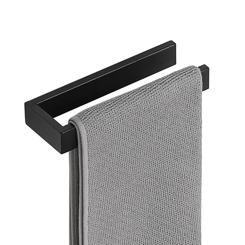 SAYAYO Porte Serviette Salle de Bain sans Perçage, Adhesif Porte-Serviettes Murale à Coller, Design Moderne Noir Mat pour Cuisine Lavabo Toilette, SUS304 Acier Inoxydable, 20CM