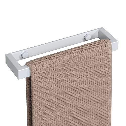 SAYAYO 20CM Porte Serviette sans Perçage Salle de Bain, Support Serviette Mural en Acier Inoxydable pour Cuisine Lavabo Toilette, Montage à Vis/Adhésif, Blanc, EGJF020-W