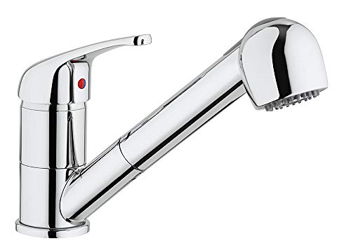 Paini Mitigeur monocommande de cuisine, lavabo, chromé, levier supérieur avec douchette extractible 2 jets et cumulateur, design moderne, entièrement fabriqué et fabriqué en Italie