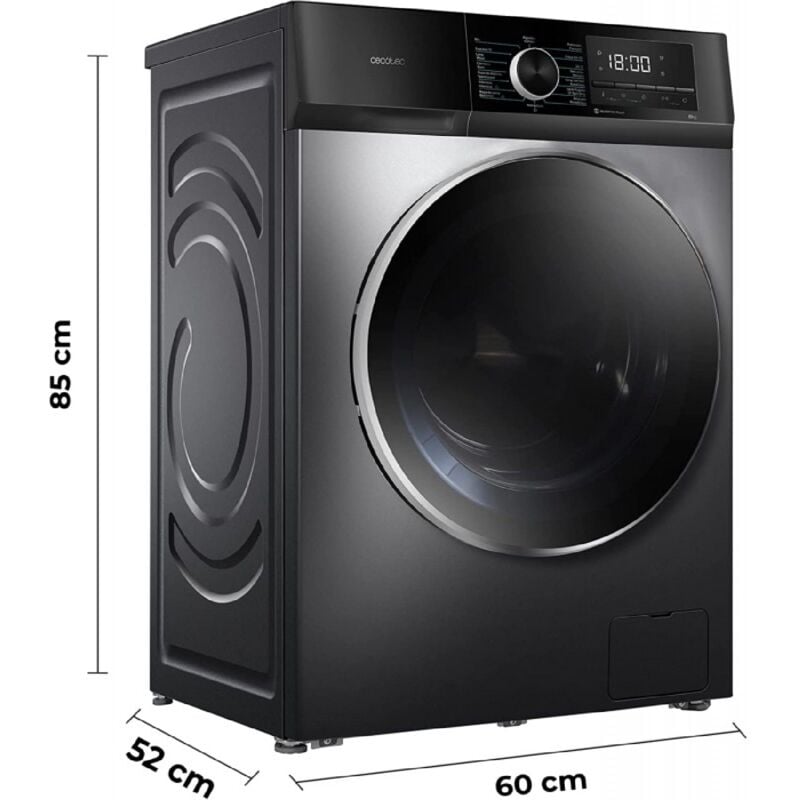 Cecotec - Lave-linge 8Kg Chargement frontal Bolero Dresscode 8500 Inverter Acier aa 1900W, 1400 tr/min, Moteur Inverter Plus, Faible consommation