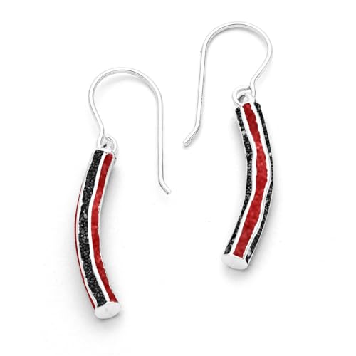 DUR - Bijoux Boucles d'oreilles pour femme Jeu de vagues avec sable de lave et granulés de corail – Fait à la main – Argent 925 rhodié – Bijoux maritimes – env. 25 mm, O5527, Höhe: 25 mm, Breite: 4 mm