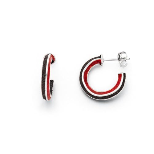 DUR Bijoux O5581 Boucles d'oreilles créoles pour femme avec sable de lave et corail – Fabriquées à la main – Argent 925 rhodié – Boucles d'oreilles maritimes – env. 19 mm, Höhe: 19 mm, Breite: 3,8 mm