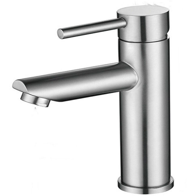 Robinet Eau Froide Acier Inoxydable, Robinet Lave Main Eau Ffroide avec Tuyau, Salle Bain Poignée Unique, Mitigeur Lavabo pour WC Invités, Salle Bain