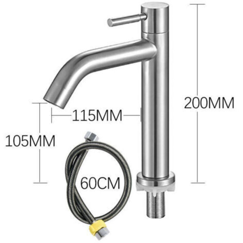 Robinet Eau Froide Acier Inoxydable, Robinet Eau Froide Lave Main avec Tuyau, Mitigeur Lavabo, Baignoire pour WC Invités, Salle Bain, Installation