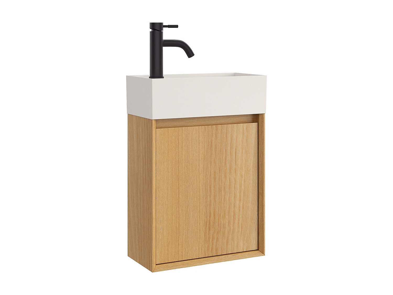 Meuble lave main suspendu avec vasque en résine blanc mat et robinet - Naturel clair - 40 x 25.5 x 57 cm - SOREL