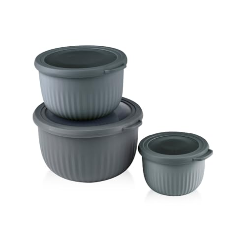 QDESIGN Lot de 3 boîtes Alimentaires, Boîtes de conservation, Plastique Réutilisables, non-toxique sans BPA - passe au micro-onde frigo congélateur lave-vaiselle - 100% Etanche Hérmétique - Gris