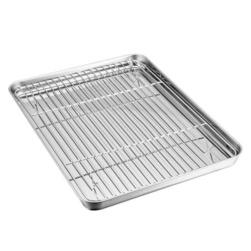 Giilayky 10 Pouces Plateau de Four Grille-Pain et Ensemble de Rack, Acier Inoxydable la Poêle à Frire avec Support de Refroidissement, Lave-Vaisselle Plaque de Cuisson Sûre