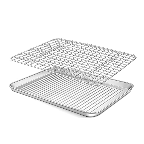 Gosera 10 Pouces Plateau de Four Grille-Pain et Ensemble de Rack, Acier Inoxydable la Poêle à Frire avec Support de Refroidissement, Lave-Vaisselle Plaque de Cuisson Sûre