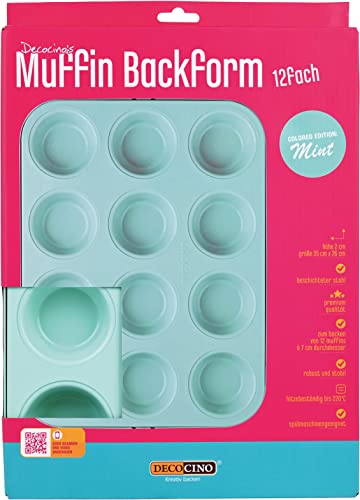 Decocino Moule à muffin - Édition menthe - Plaque de cuisson de qualité supérieure avec revêtement antiadhésif - Pour la cuisson de 12 muffins ou cupcakes - Passe au lave-vaisselle