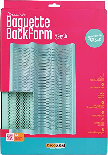 Decocino Moule à baguette 38,5 x 28 cm - Édition menthe - Plaque de cuisson de qualité supérieure avec revêtement antiadhésif - Pour la cuisson de 3 baguettes - Passe au lave-vaisselle