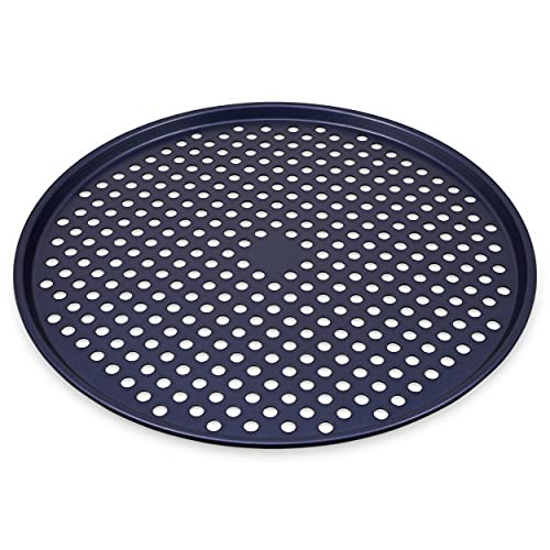 NutriChef Plaque Pizza - Moule à Pizza Antiadhésif - Plat Rond en Acier Perforé - Plaque de Cuisson premium avec Poignées en Silicone - Plat pour Four - Compatible Lave-Vaisselle - Bleu