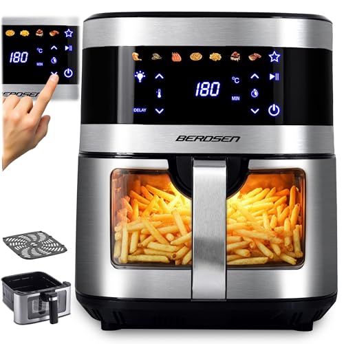 Berdsen Friteuse à air chaud, taille XXL, 9,1 l, avec fenêtre de visualisation et écran tactile, 1700 W, 7 programmes, passe au lave-vaisselle