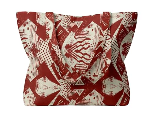 lavendel Tote Bag 100% Coton – Sac Fourre-Tout avec Compartiment Intérieur – Impression Numérique – 8 Designs Modernes – Certifié Oeko-Tex – Sac Cabas Réutilisable - Mesa Red - 35 × 45 cm