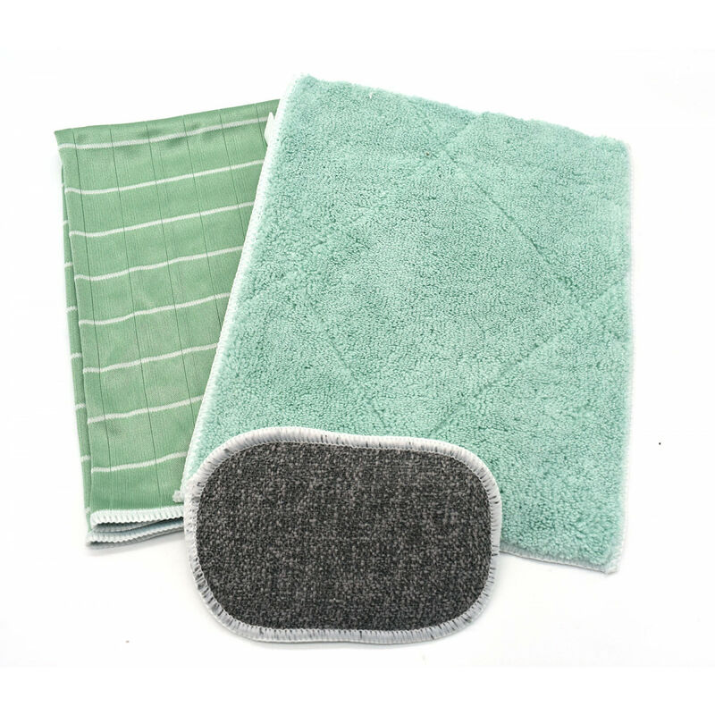 Kit de 1 chiffon microfibres en bambou ,1 lavette double face et 1 éponge en bambou