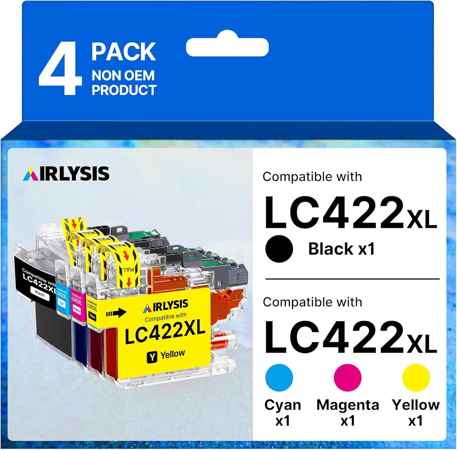 AIRLYSIS LC422XL Cartouche d'encre Compatible pour Brother LC422 XL LC-422XLVAL pour Brother MFC-J5340DW MFC-J5345DW MFC-J5740DW MFC-J6540DW MFC-J6940DW (1 Noir,1 Cyan,1 Magenta,1 Jaune)