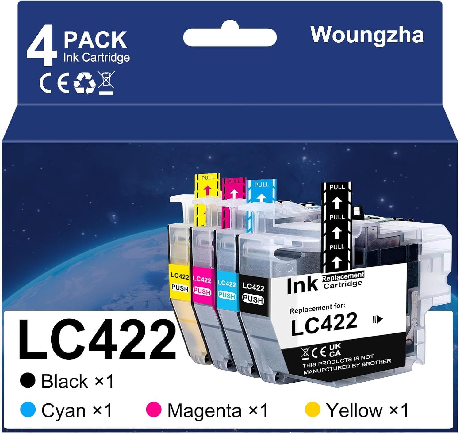Woungzha Lot de 4 cartouches d'encre LC422XL Compatible avec Brother LC422 LC422 XL pour Brother MFC-J5340DW J5345DW J5740DW J6540DW J6940DW Imprimantes