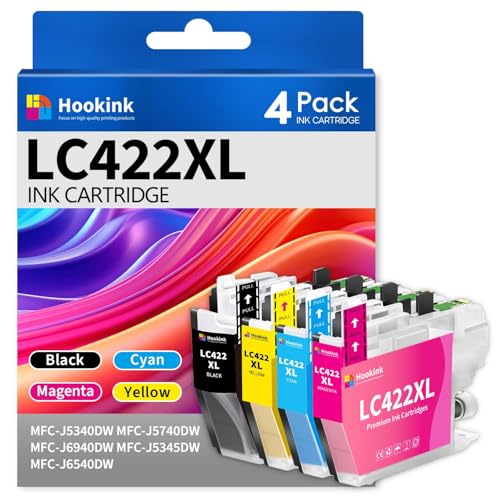 Hookink LC422XL LC422 Cartouche d'encre Compatible pour Brother LC422 XL LC-422XL LC-422XLVAL Cartouche d'encre pour MFC-J5340DW MFC-J5345DW MFC-J5740DW MFC-J6540DW MFC-J6940DW (Lot de 4)