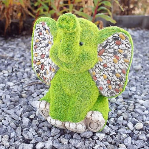 Garden Mile Éléphant décoratif d'extérieur pour le jardin, herbe et pierre, décoration de jardin en résine, décoration d'intérieur et d'extérieur, figurine fantaisie sur pied, statue d'animal sur pied