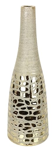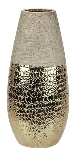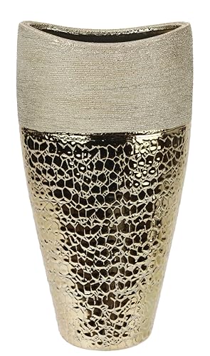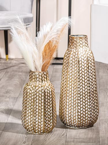Casablanca Grand Vase décoratif, Moderne, en métal, Herbe de la Pampa, pour Le Salon, Cadeau d'anniversaire, Couleur : doré, Hauteur : 38 cm