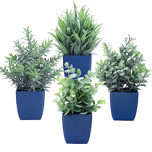 Summer Flower Lot de 4 Petites Plantes artificielles en Pot d'eucalyptus Artificiel en Pot - Mini fougère de blé - Fausse Verdure pour la Maison, Le Bureau, la Table, la Salle de Bain, la Ferme, la