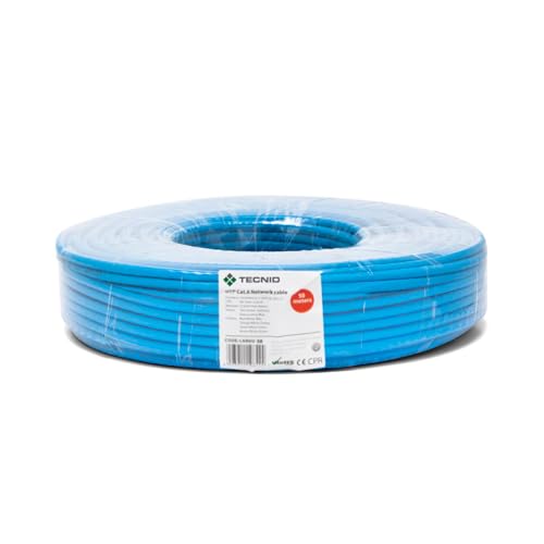 Câble réseau Ethernet | CAT6, AWG24, CCA, UTP, RJ45 | Bobine réseau | Bleu (50 mètres) | Pour la maison et le bureau
