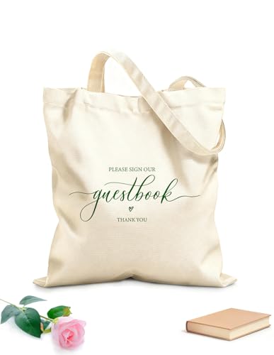 XIARON Sacs en toile imprimés numériquement Veuillez signer notre livre d'or pour le mariage tissu épais de 340g/m² Utilise comme trousse de maquillage M Vert