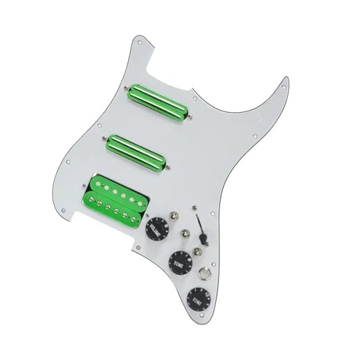 Plaque De Protection De Guitare Micro Le Câble De Micro Pickguard Pour Guitare SSH Est Livré Pré Installé Avec Deux Bobines(Wh Green)