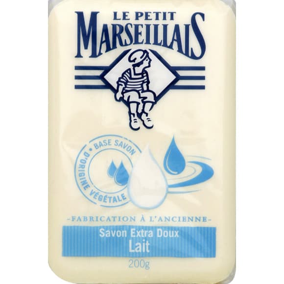 Le Petit Marseillais - Savon Extra Doux Lait 200 g – Savon solide mains & corps avec 98 % d'ingrédients d'origine naturelle – Emballage en papier recyclable