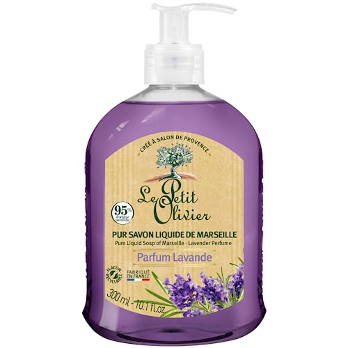 LE PETIT OLIVIER - Lot de 12 - Pur Savon Liquide de Marseille - Parfum Lavande de la Région de Grasse - Nettoie la Peau en Douceur - 95% d'Origine Naturelle - Fabriqué en France - 300ml