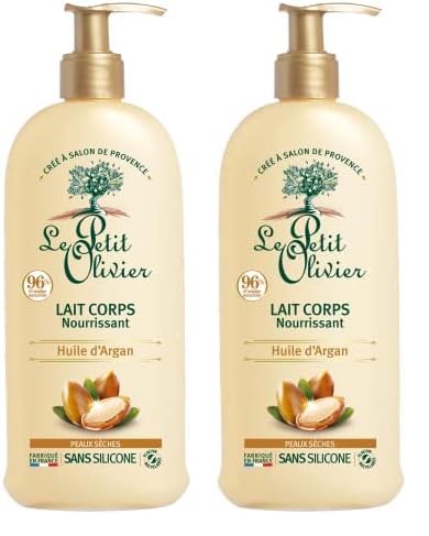 LE PETIT OLIVIER - Lait Corps Nourrissant - Huile d'Argan - Adoucit, Régénère & Nourrit - Peaux Sèches - 96% D'Origine Naturelle - Sans Silicone - Fabriqué en France - 250 ml (Lot de 2)