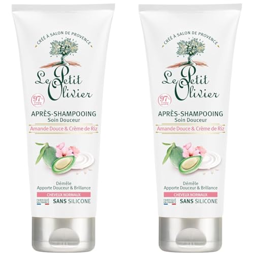 LE PETIT OLIVIER - Après-Shampooing Soin Douceur - Amande Douce & Crème De Riz - Démêle & Adoucit - Cheveux Normaux - Sans Silicone - Fabriqué en France - 200 ml (Lot de 2)