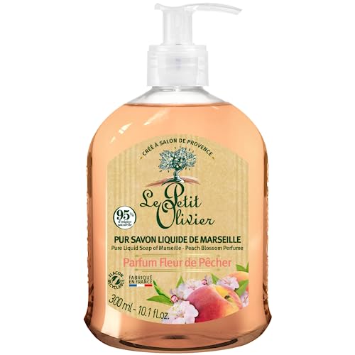 LE PETIT OLIVIER - Lot de 12 - Pur Savon Liquide de Marseille - Parfum Fleur de Pêcher de la Région de Grasse - Nettoie la Peau en Douceur - 95% d'Origine Naturelle - Fabriqué en France - 300ml