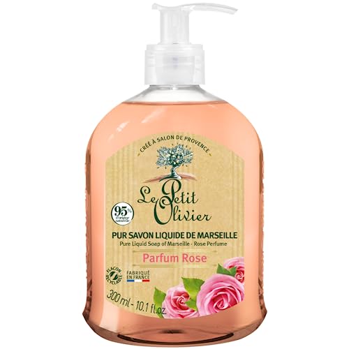 LE PETIT OLIVIER - Pur Savon Liquide de Marseille - Parfum Rose de la Région de Grasse - Nettoie la Peau en Douceur - 95% d'Origine Naturelle - Fabriqué en France - 300 ml