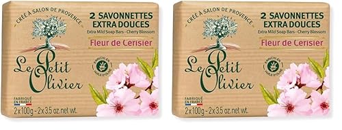 LE PETIT OLIVIER - 2 Savonnettes Extra Douces - Fleur De Cerisier - Parfum De La Région De Grasse - Nettoient La Peau En Douceur - Fabriqué en France - 2x100g
