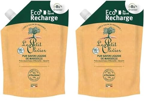 LE PETIT OLIVIER - Recharge Pur Savon Liquide - Hypoallergénique - Sans Parfum & Sans Colorant - Nettoie la Peau en Douceur - 98% d'Origine Naturelle - Cuit au Chaudron - Fabriqué en France - 300ml