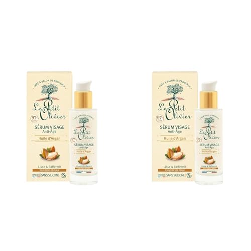 LE PETIT OLIVIER - Sérum Visage Anti-Âge - Huile d'Argan - Lisse & Raffermit - Tous Types De Peaux - 97% D'Origine Naturelle - Sans Silicone - Fabriqué en France - 30 ml (Lot de 2)