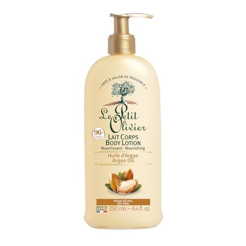 LE PETIT OLIVIER - Lait Corps Nourrissant - Huile d'Argan - Adoucit, Régénère & Nourrit - Peaux Sèches - 96% d'Origine Naturelle - Sans Silicone - Fabriqué en France - 250 ml