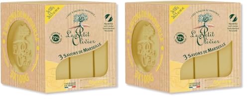 LE PETIT OLIVIER - 3 Savons De Marseille - Huile D'Olive - Parfum De La Région De Grasse - Nettoient La Peau En Douceur - Fabriqué en France - 3x100g (Lot de 2)