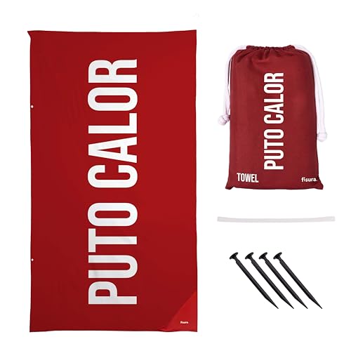FISURA – Serviette de Plage Rouge P*to calor, Microfibre légère, Anti-Sable, séchage Rapide. Parfaite pour la Plage, la Piscine, Le Camping ou Les Pique-niques d'été.