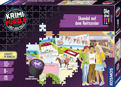 KOSMOS 680725 Puzzle de Crime Les Trois !!! Scandale sur Le Tournoi équestre 200 pièces, Brille dans Le Noir, Lire, Puzzles, résoudre des énigmes, pour Enfants à partir de 8 Ans, Chevaux Puzzle, Les