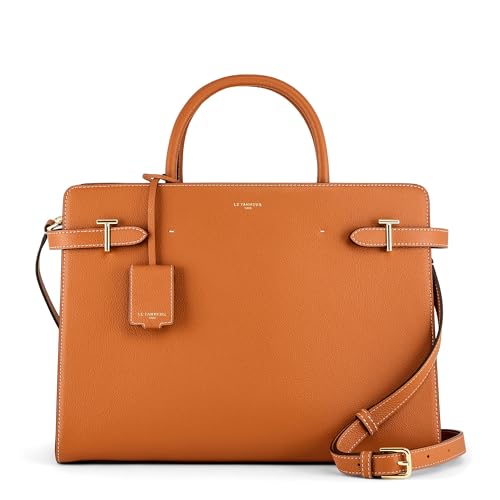 Le Tanneur, Grand Sac à Main 13 Pouces, Sac bandoulière, en Cuir grainé, émilie, Femme, porté Main, épaule, croisé, bandoulière Amovible et Ajustable, 2 Compartiments, Poches Plates, 2 Poches zippées